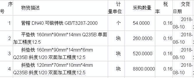 平墊鐵投標(biāo)截止及開標(biāo)時間: 2018 年 8 月 10 日 14:00 時